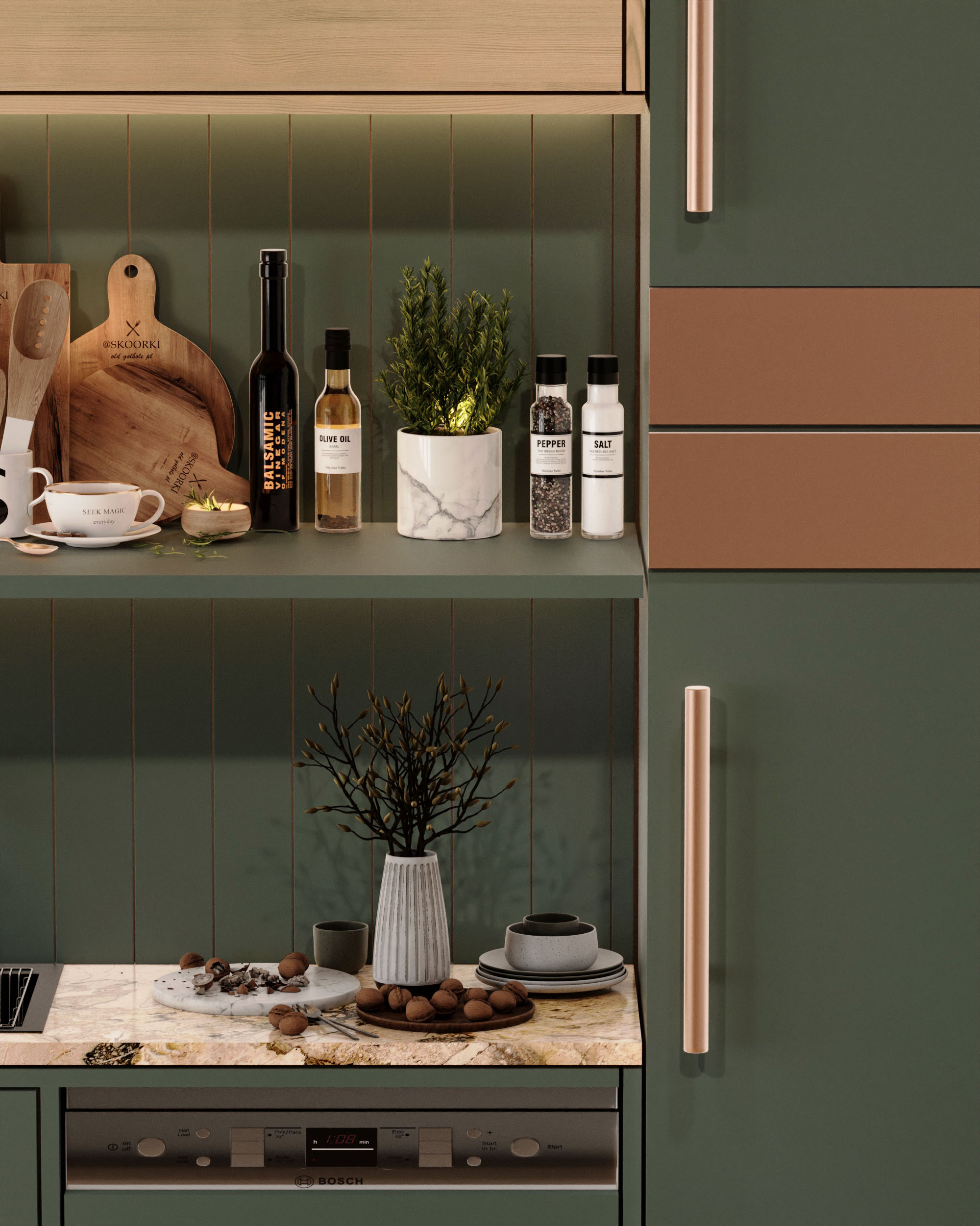Fonksiyonel şıklık! N I A Evi için hazırladığımız, iç mimari mutfak konsept tasarım projemiz.
